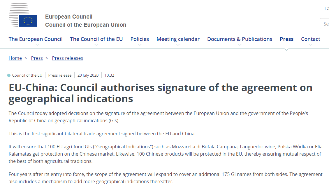 The Council of the European Union made a decision on July 20, local time, authorizing the formal signing of the China-EU Geographical Indication Agreement. 100 European Geographical Indication products in China and 100 Chinese Geographical Indication products in the EU will be protected. According to the terms of the agreement, 28 tea products protected by geographical indications were included in the first batch of protection lists; after four years, the scope of the agreement will be expanded to cover additional 175 products protected by geographical indications of both parties, including 31 products protected by geographical indications of tea.